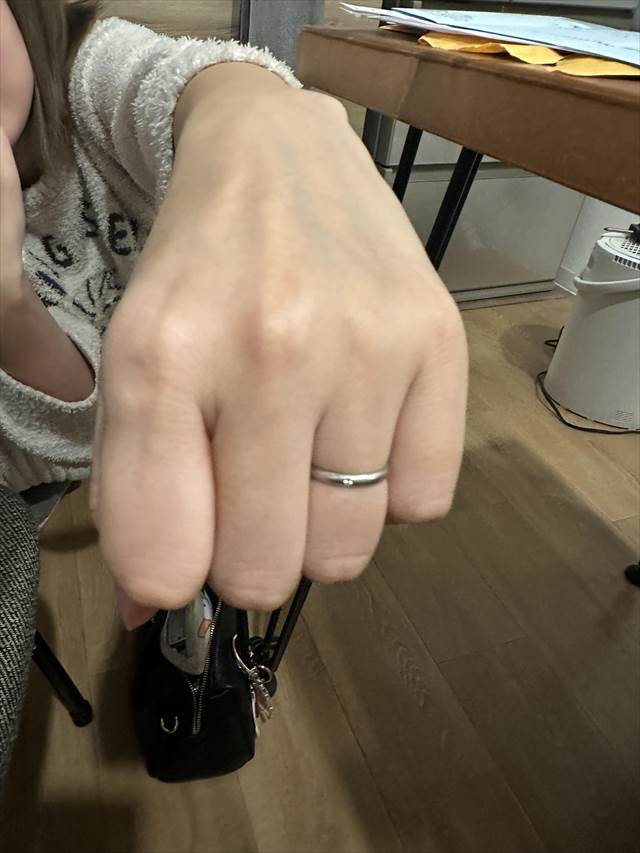 指輪を実際に使用してみての感想は、とにかく「もう抜けない」という安心感です。手作りで自分たちの指にぴったり合わせたので、サイズが合わずに緩む心配がなく、日常生活でもほとんど気になりません。シンプルな甲丸デザインなので、どんな服装やシーンにも違和感なく馴染み、毎日つけていても疲れません。また、出産や日常の慌ただしい場面でも外れることがなく、夫とお互いの指輪を確認するたびに安心感と愛着を感じます。手作りならではの温かみもあり、大切に使い続けたいと思える指輪です。